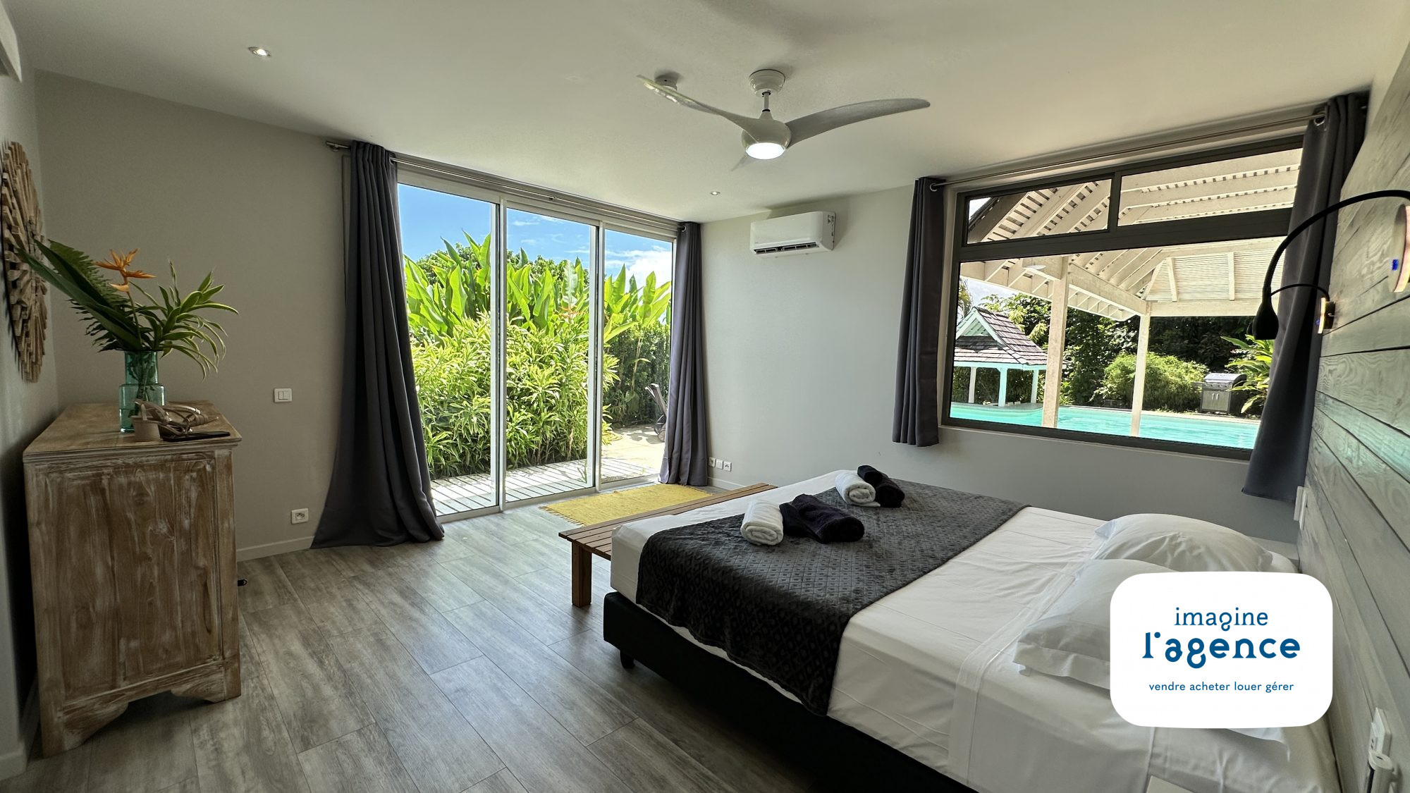 Au coeur d’une propriété luxuriante de 20.000m2 à l’abri des regards et à proximité d’un accès mer, IMAGINE L’AGENCE vous propose à l’achat une magnifique villa F7 meublée avec élégance et entièrement climatisée. Des volumes généreux bénéficiant d’une douce lumière naturelle, de nombreuses vues dégagées sur l’océan et une piscine ensoleillée disposant de son propre bar font de ce bien d’exception un véritable havre de paix.
