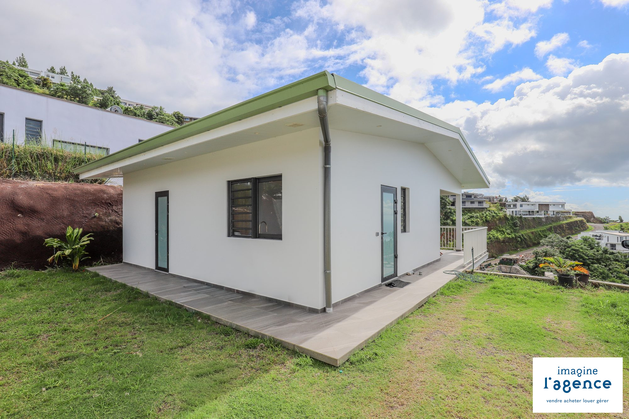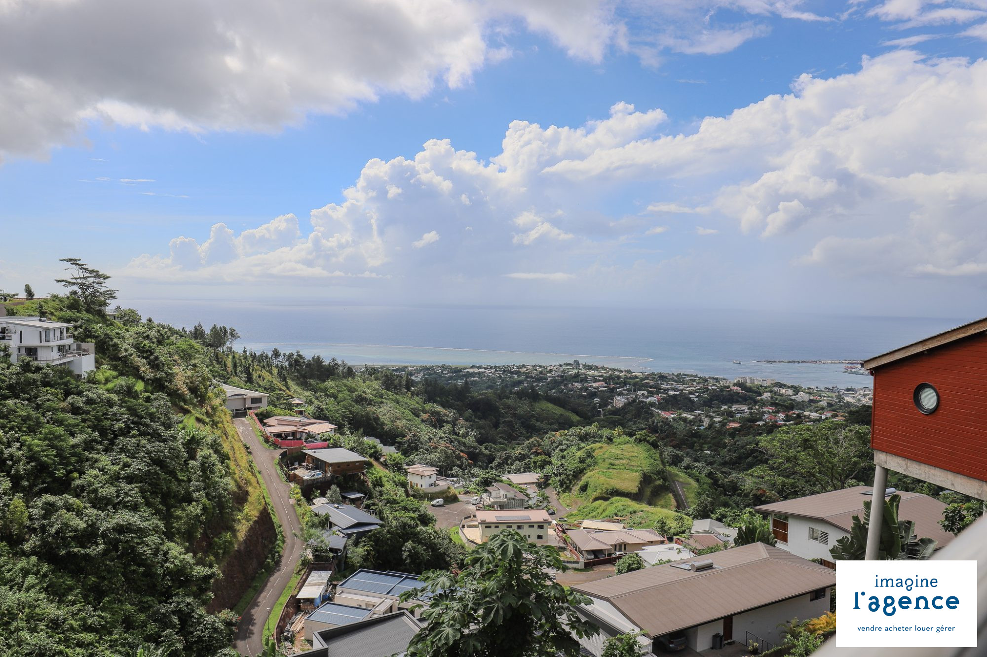 Nichée sur les hauteurs d’un lotissement résidentiel, au coeur d’une impasse à l’abri des regards, IMAGINE L’AGENCE vous propose à la location ce magnifique appartement F2 meublé de 81m2 + 17m2 de terrasse couverte offrant une superbe vue dégagée sur la mer et l’aéroport de Faa’a.